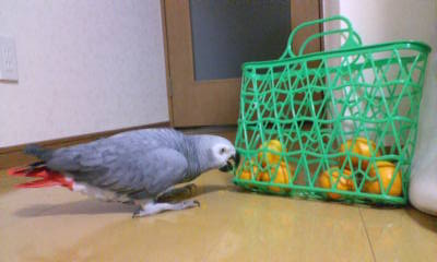 ポニャックさんを放鳥していたある日、リビングに柑橘系の香りが漂ってきました。